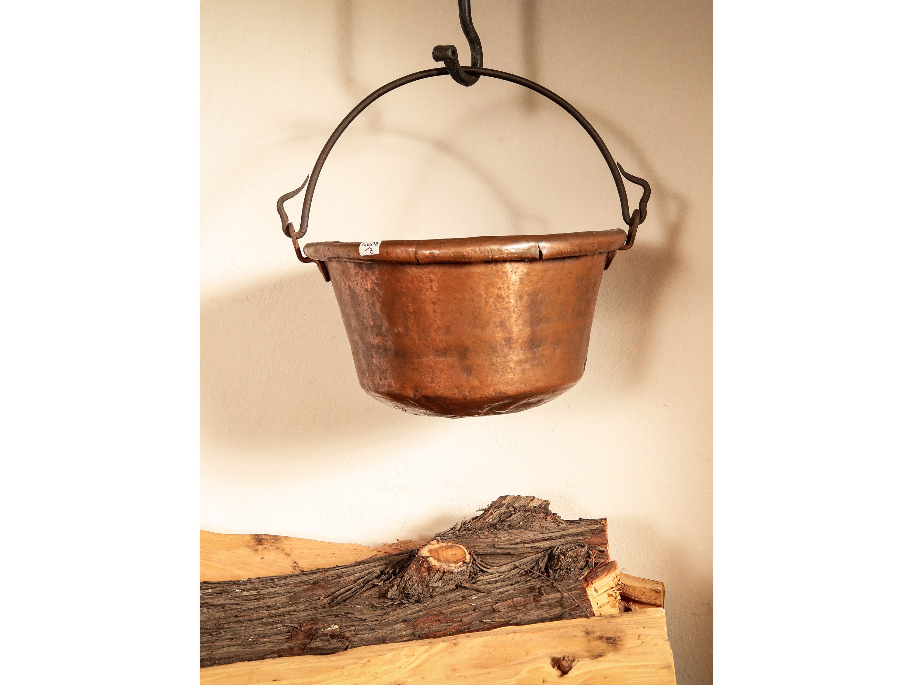 Paiolo da camino in rame e ferro battuto