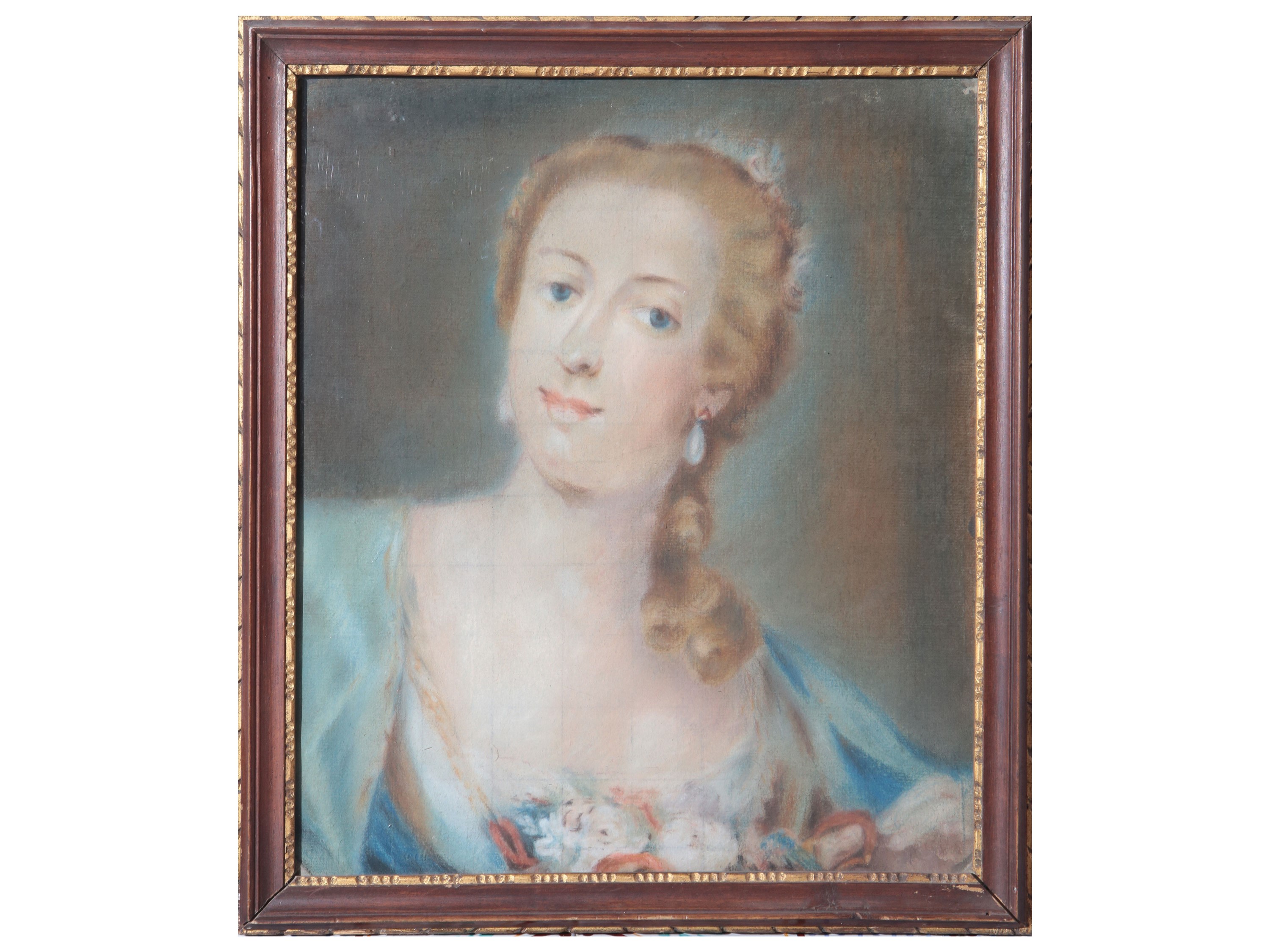 Scuola francese nello stile di Rosalba Carriera, XIX secolo pastello su carta applicata a tela, in cornice, lievi difetti