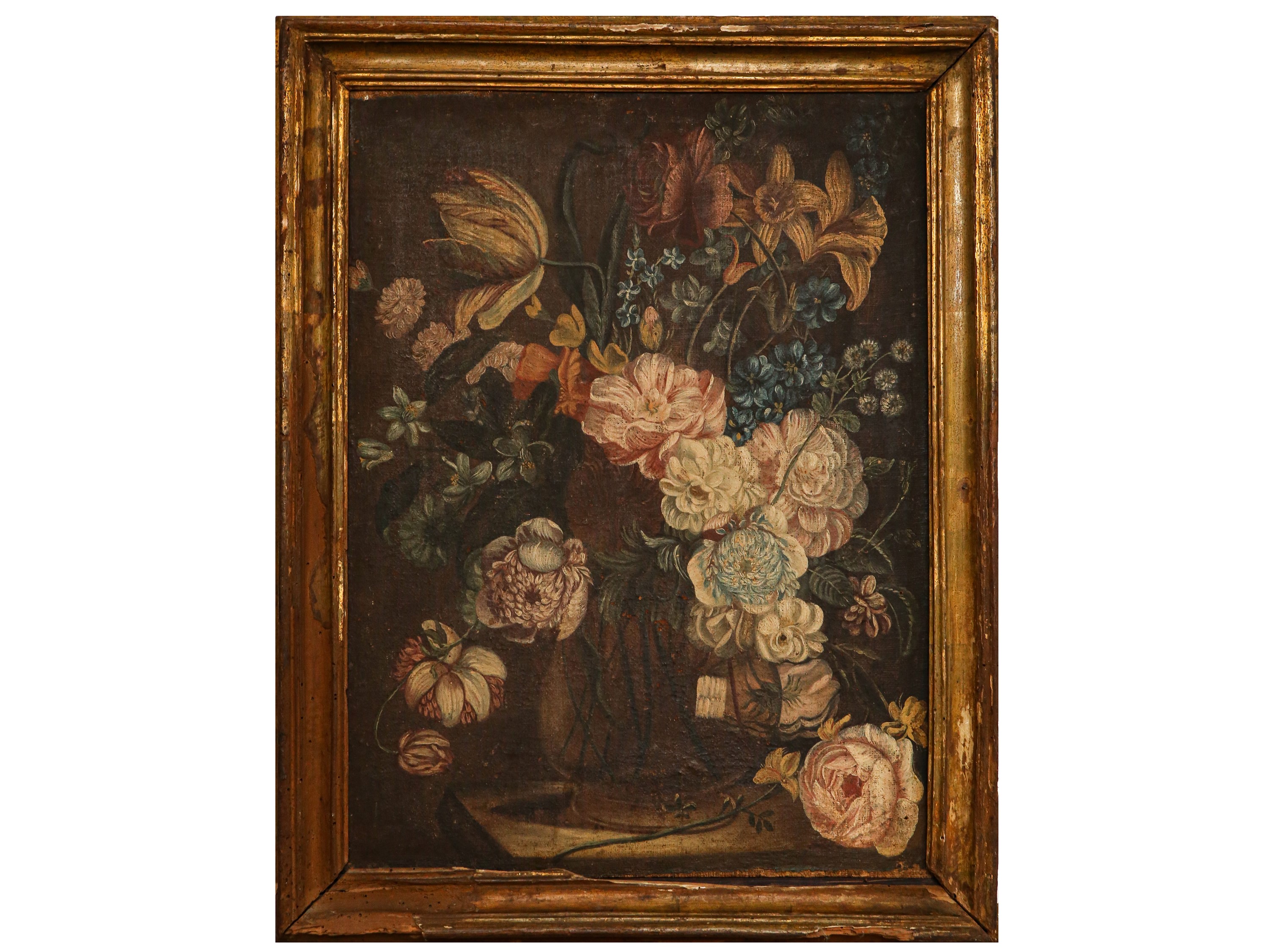 XVIII secolo coppia di dipinti ad olio su tela, in cornici coeve modanate in legno intagliato e dorato, alcuni difetti