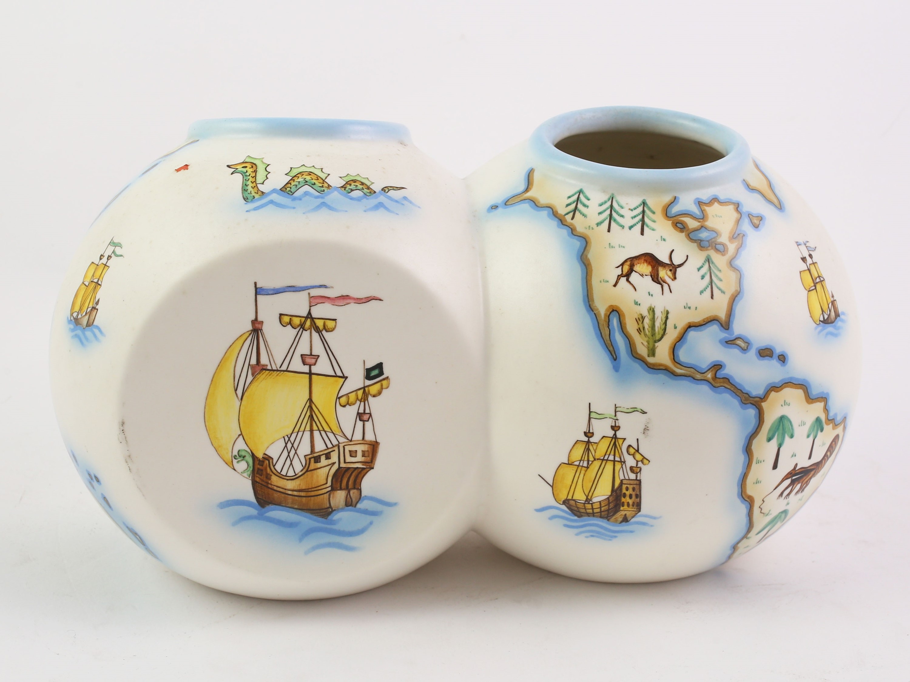 Torino, Anni Trenta realizzato come un doppio globo, interamente dipinto con planisfero decorato da animali e piante, caravelle e mostri marini