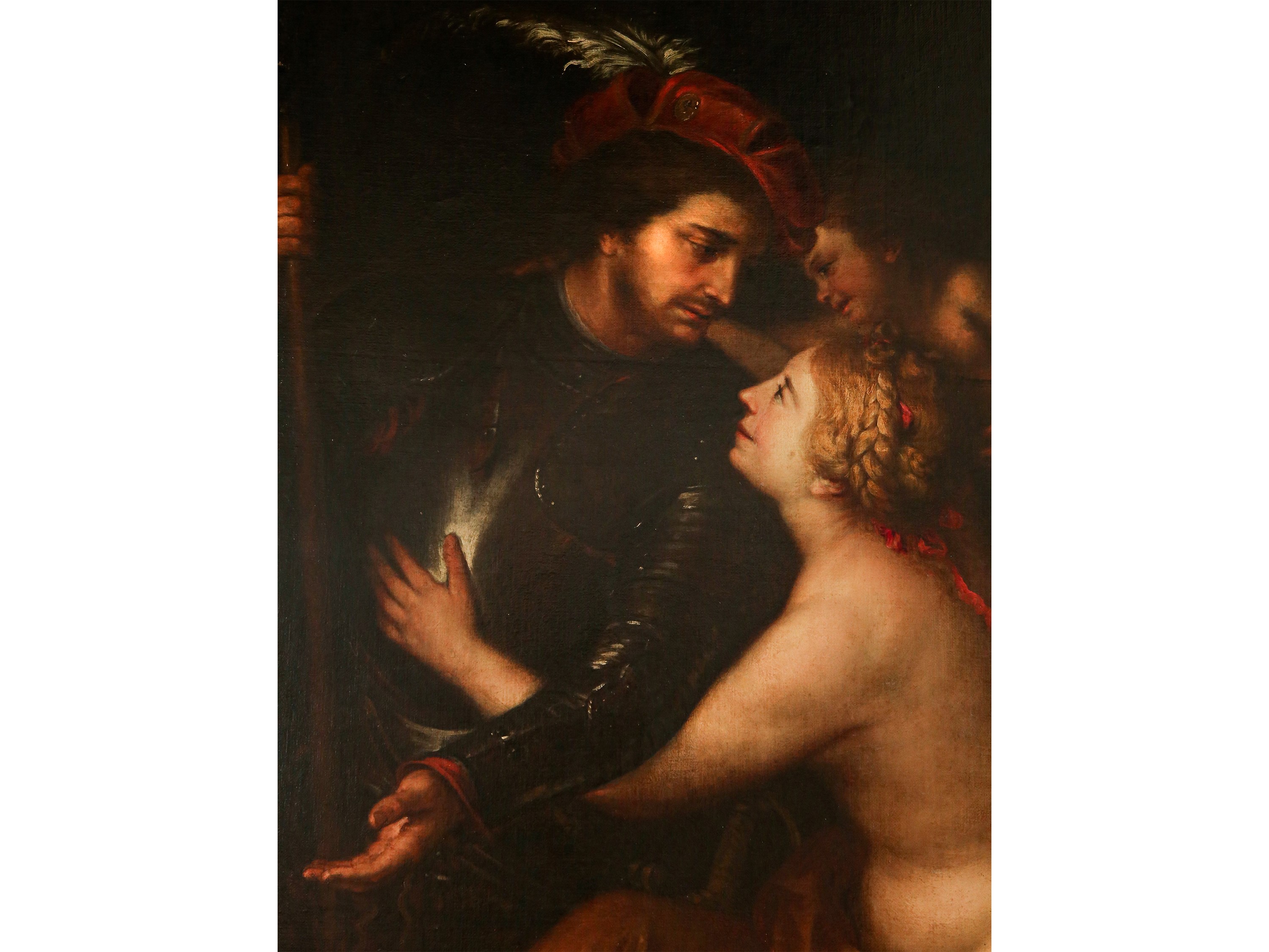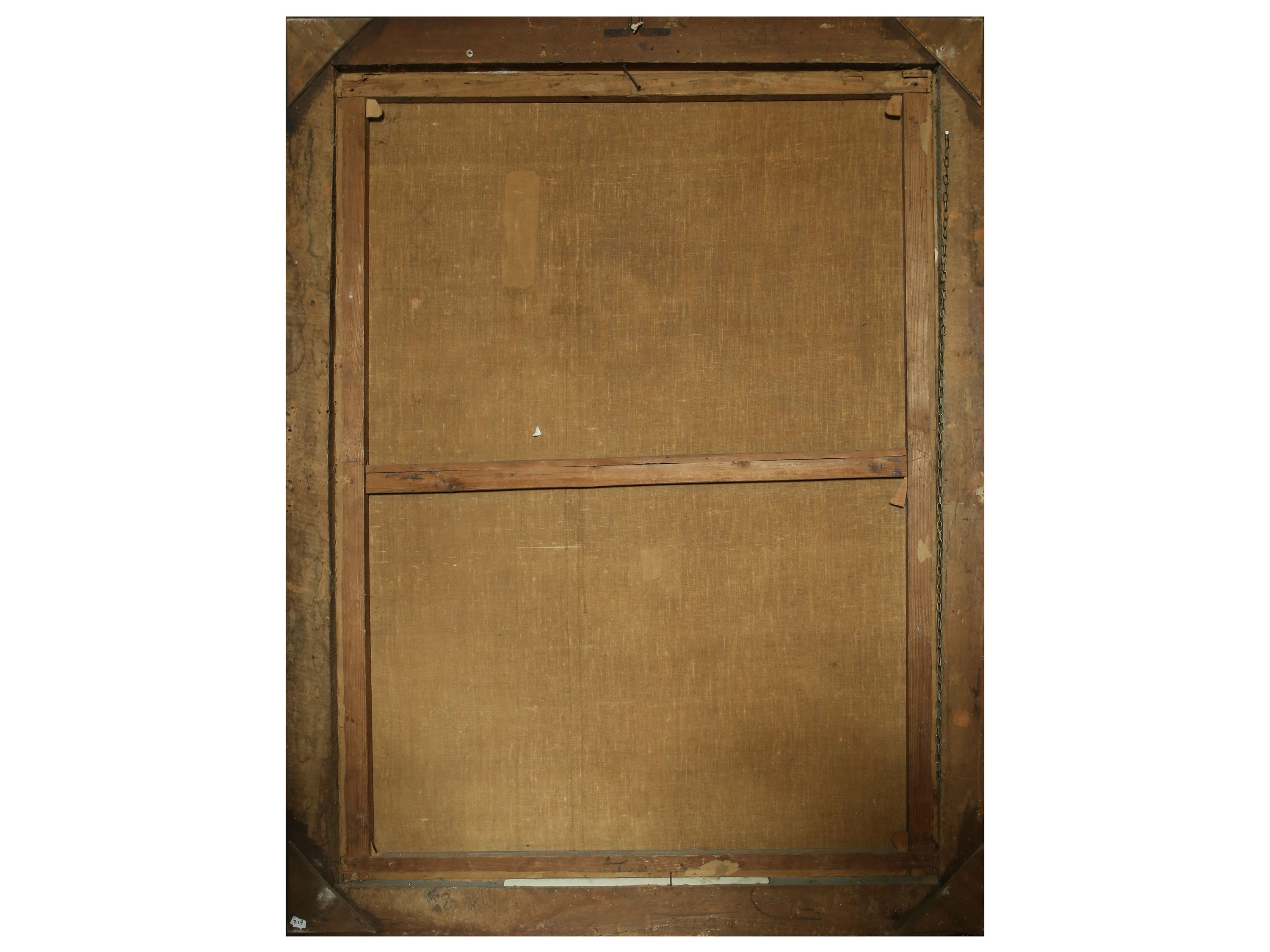 XVII secolo olio su tela, in cornice coeva in legno intagliato e dorato con motivo di foglie d'acanto, lievi difetti