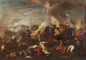 Provenienza: Collezione privata, Parma.Bibliografia: P. Consigli Valente (a cura di), ''La battaglia nella pittura del XVII e XVIII secolo'', 1986, p. 96, n. 75. p. 394.Referenze: Fototeca Zeri, inv. 136827, busta 2, scheda 84378.