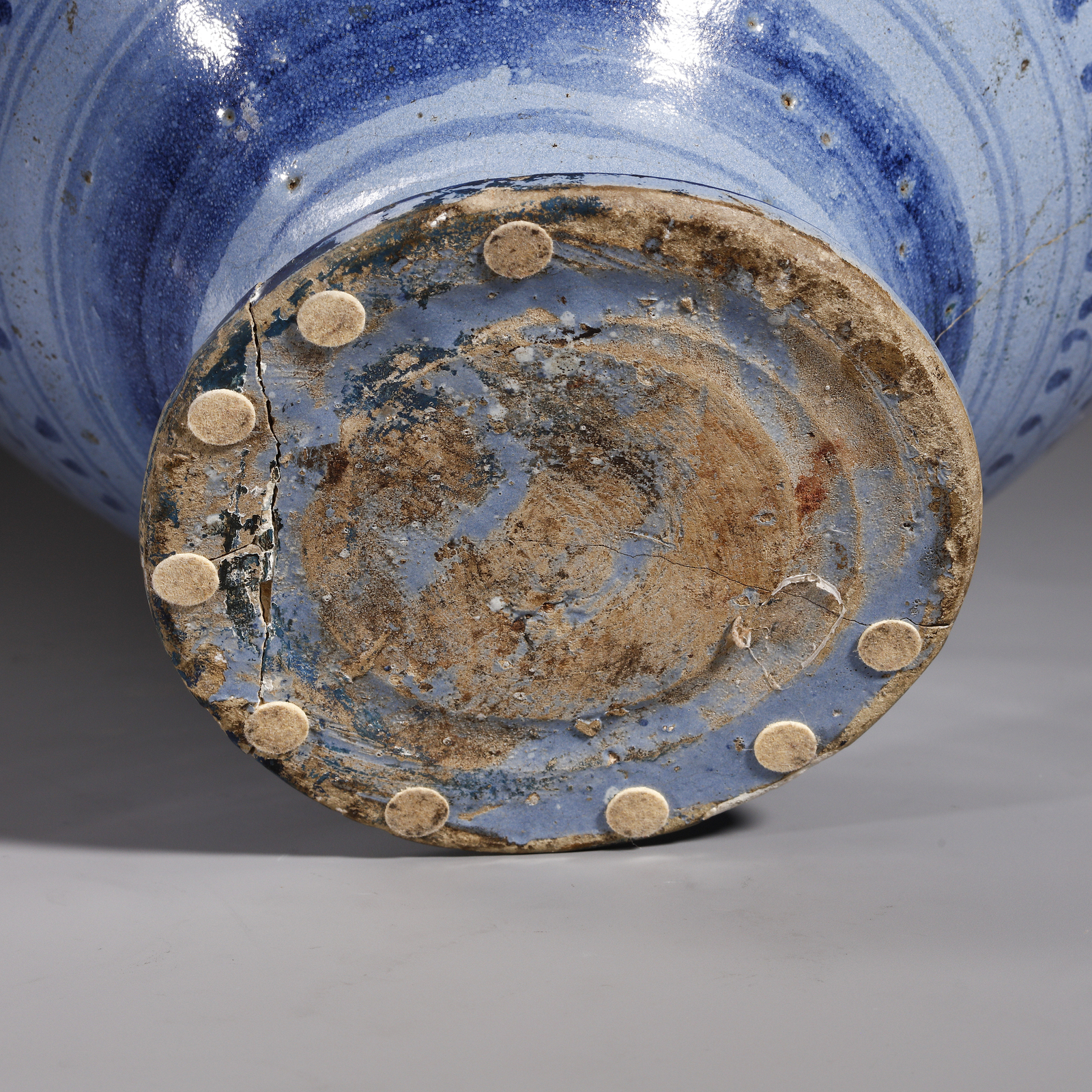 Boccia in maiolica a fondo berrettino con decorazioni fitomorfe e geometriche