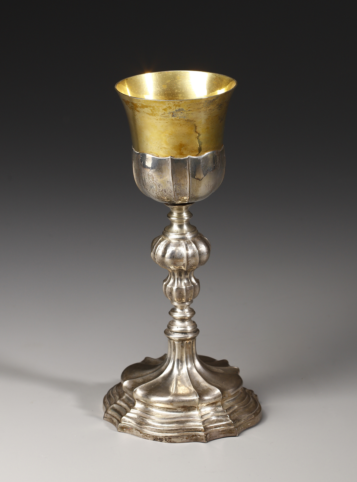 Calice in argento con fusto centrale a balaustro e base a forma circolare sagoma [..]