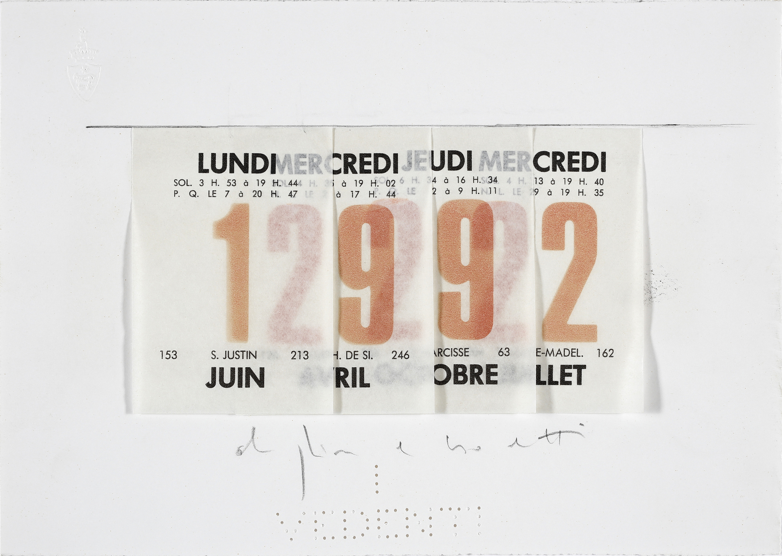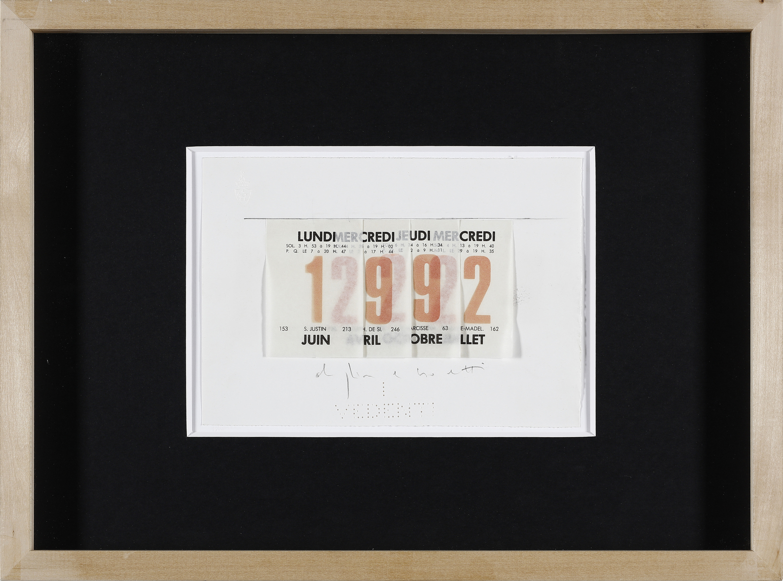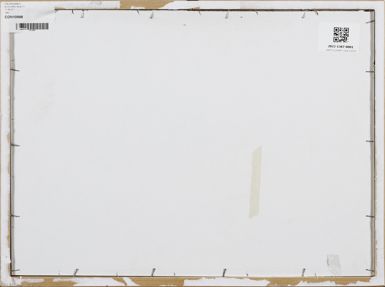 Firma in basso al centro. Opera archiviata presso l'Archivio Alighiero Boetti, Roma, come da documentazione fotografica allegata all'opera riportante il relativo numero d'inventario. Certificato di provenienza Elite Trading, Milano. Provenienza: Elite trading, Milano. Collezione privata.