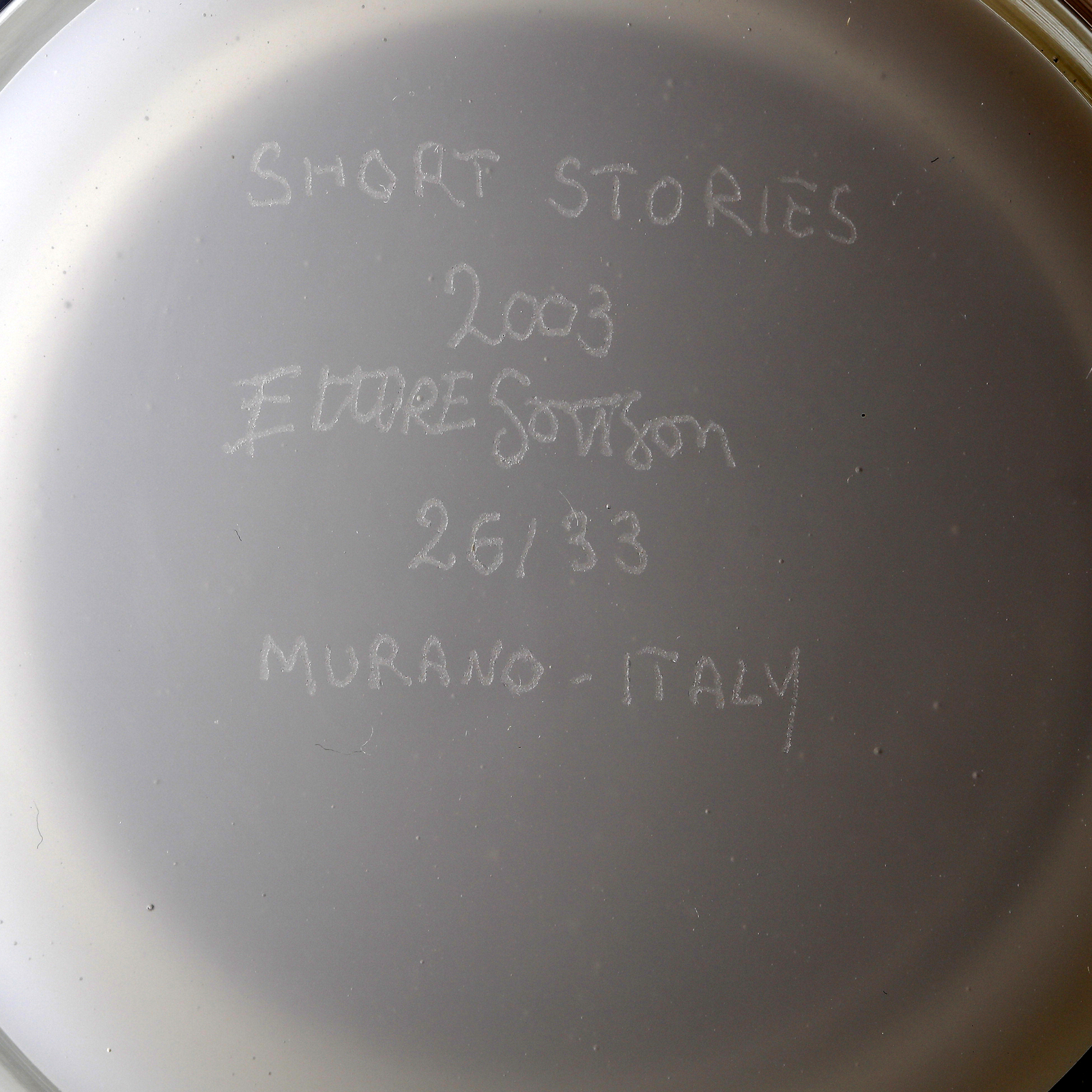 26/33. Alla base 2003 SHORT STORIES BY Ettore Sottsass HAND MADE IN ITALY. Edizione totale: 33 esemplari + 3 prove d'artista di 14 oggetti in ceramica e vetro. Pubblicazione: S. Campitelli, A. Blessi, E. Sottsass, Racconti. Quattordici ceramiche e vetri di Ettore Sottsass, Livorno 2003. Milco Carboni, Sottsass: 700 Disegni, Skira editore, Milano, 2005.