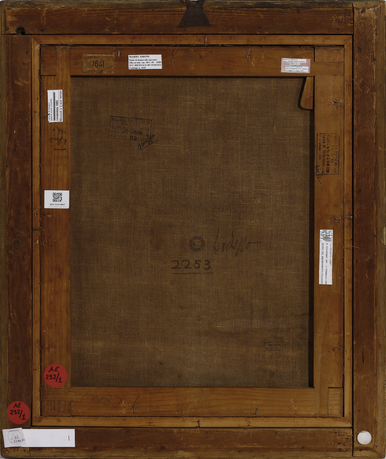 Firma in basso a destra. Al retro timbri Galleria d'Arte Dino Tega, Milano. Opera archiviata presso l'Associazione per il patrocinio e la promozione della figura e dell'opera di Mario Sironi, Milano, come da documentazione allegata all'opera riportante il relativo numero d'inventario. Esposizioni: XVI Biennale Internazionale d’Arte di Venezia, Venezia, 1968, catalogo n. 1641. Morandi e il suotempo, catalogo della mostra, Bologna, Galleria d’Arte Moderna, 9 novembre 1985 – 10 febbraio1986, p. 58, n. 180. Maestri del Novecento nelle collezioni private modenesi, Modena, Palazzo Santa Margherita, Galleria Civica, 18 maggio – 13 luglio 1997, p. 43. Novecento nudo,Roma, Museo del Risorgimento Italiano, 19 dicembre1997 – 22 febbraio 1998, p. 157. Pubblicazioni: Poligono, rivista internazionale d’arte, mensile curato da Raffaello Giolli, anno V, n. 1, gennaio1931-IX, Edizioni del Poligono, Milano, Mario Sironi, a cura di Lamberto Vitali, p. 13, ripr. in b/n. Provenienza: Galleria d'Arte antica e moderna Dino Tega, Milano. Christie's, Milano. Collezione privata. Opera archiviata dall’Associazione per il Patrocinio e la Promozione della Figura e dell’Opera di Mario Sironi, Milano, con il numero 238/22 RA. Lievi difetti.