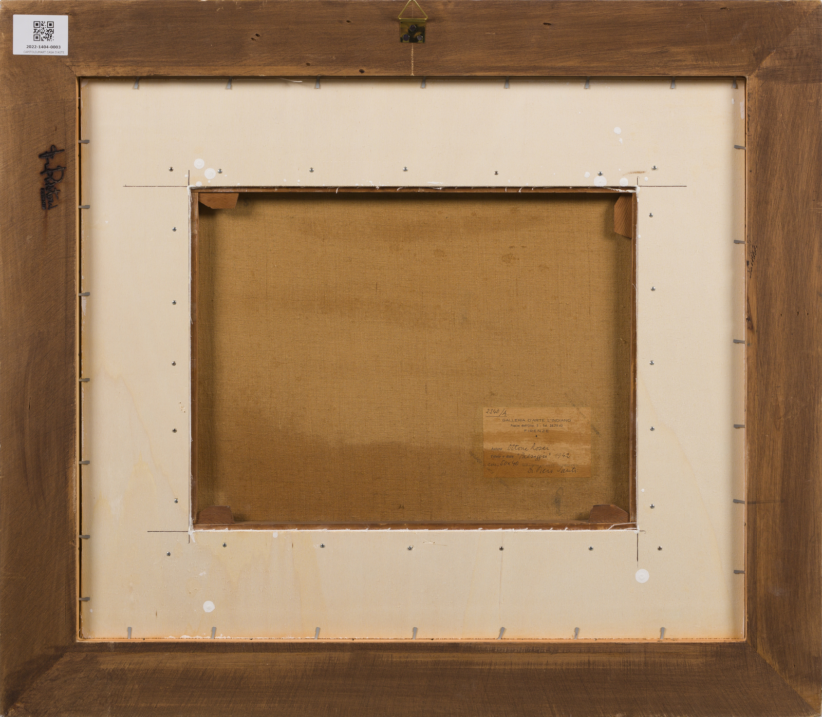 Firma e anno in basso a destra. Al retro cartiglio descrittivo Galleria d'arte l'Indiano, Firenze. Autentica su fotografia di Luigi Cavallo riportante il relativo numero d'inventario. Provenienza: Collezione privata. Farsetti Aste, 2019. Collezione privata, Milano. Lievi difetti.