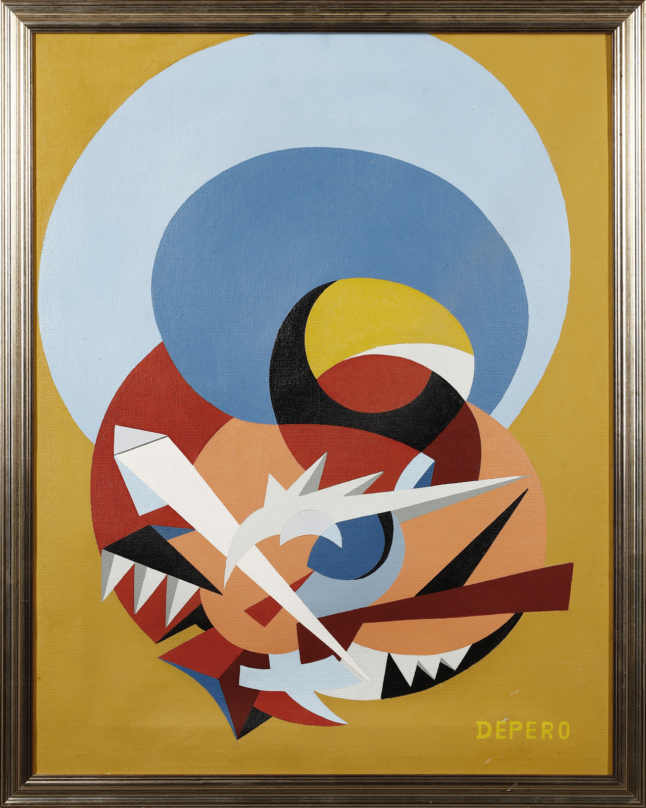 Firma in basso a destra. Opera archiviata presso l'Archivio Unico per il catalogo delle opere futuriste di Fortunato Depero da Maurizio Scudiero, Rovereto, come da documentazione fotografica allegata riportante il relativo numero d'inventario. 1915/1952.
