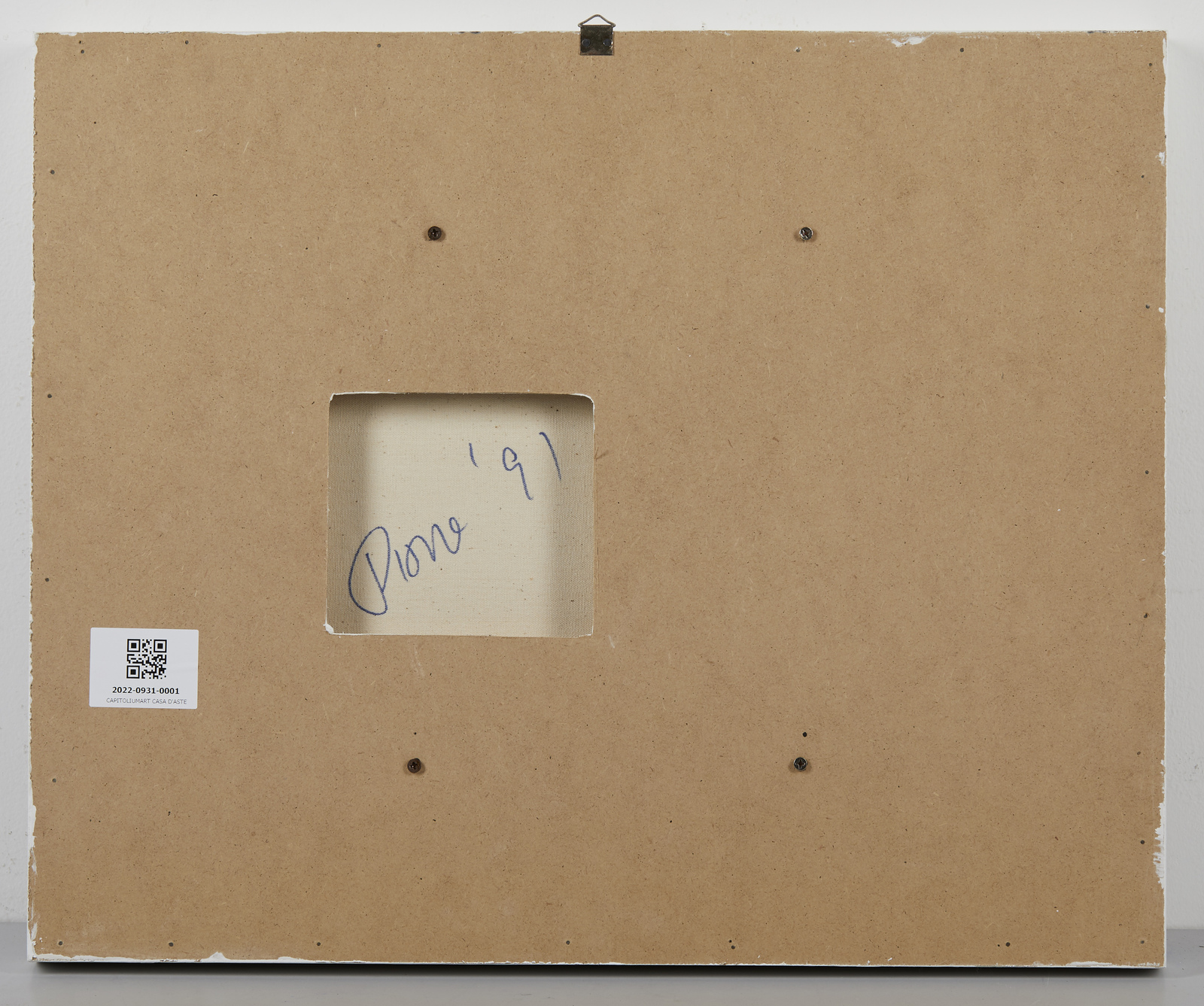 Firma in basso a destra. Al retro firma e anno. Autentica dell'artista su fotografia. Certificato di provenienza Emily Harvey Gallery, New York. Provenienza: Emily Harvey Gallery, New York. Collezione privata, Modena. Lievi difetti,