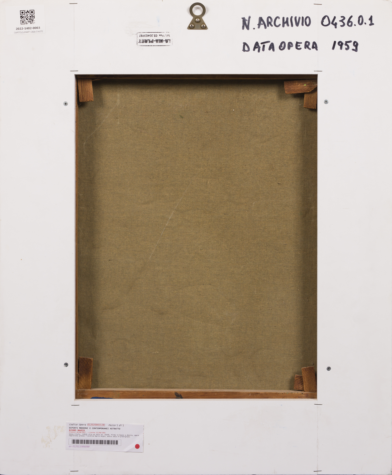 Firma in basso a destra, Opera archiviata presso l'Archivio Mario Nigro, Milano. Entro teca di plexiglass. Lievi difetti.