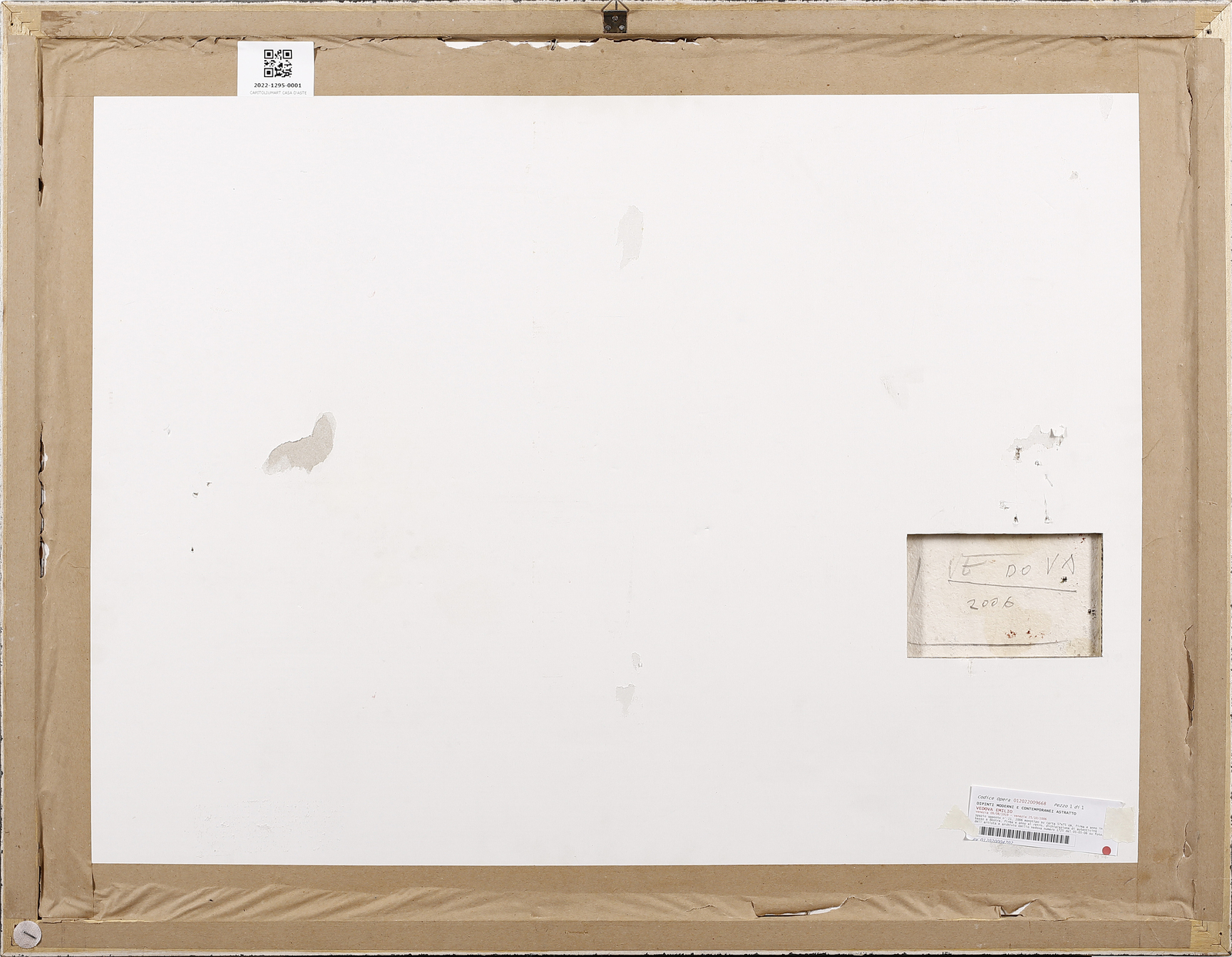 Firma e anno in basso a destra e al retro. Opera archiviata presso l'Archivio Emilio Vedova, Venezia, come da documentazione fotografica allegata all'opera riportante il relativo numero d'inventario e la firma dell'artista. Pubblicazione: Vedova - Monotypes, testo di Luca Massimo Barbero, realizzato in occasione della presentazione di una selezione di monotipi di Emilio Vedova alla Collezione Peggy Guggenheim, Venezia , Maggio - Settembre 2007, p.65. Provenienza: Boetto, Genova. Collezione privata. Meeting Art, Vercelli. Collezione privata, Roma.