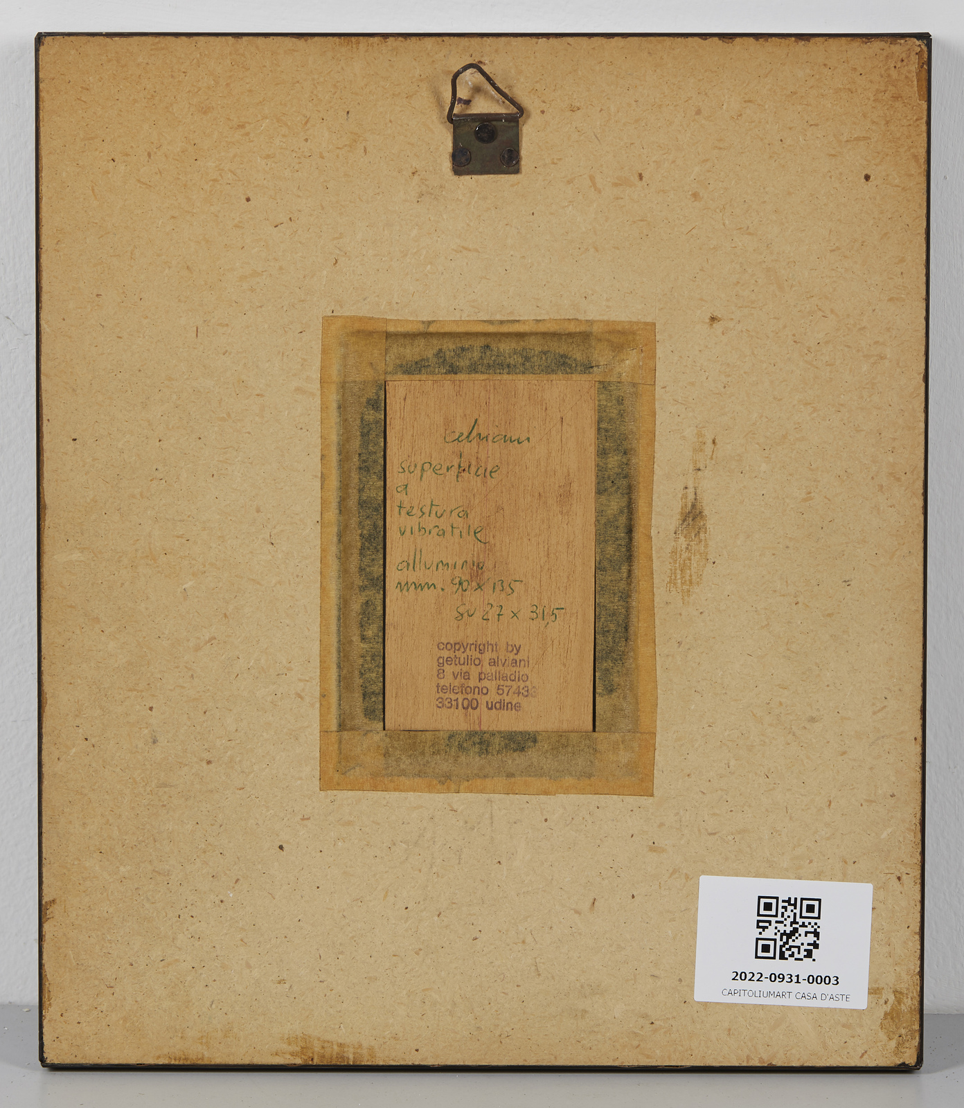 Dedica e firma incisa in basso a destra. Al retro titolo e timbro dell'artista. Dimensione supporto: 31.5x27 cm. Provenienza: Studio dell'artista. Collezione Privata, Modena. Lievi difetti.