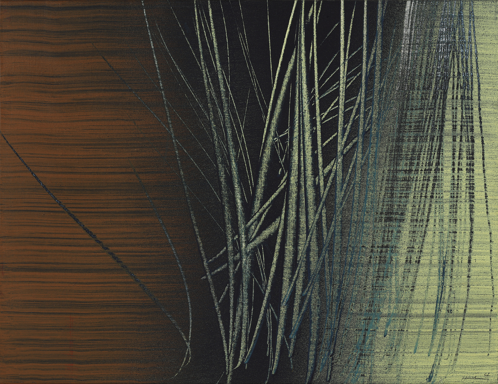 Firma e anno in basso a destra. Autentica dell'artista su fotografia con timbro Galleria del Leone, Venezia. Ringraziamo la Fondation Hartung - Bergman, Antibes, per aver confermato l'autenticità dell'opera. Provenienza: Galleria del Leone, Venezia. Collezione privata, Venezia.