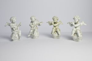 PAOLA BENELLI Gruppo di 4 suonatori in porcellana Rosenthal, h cm 13,5. Group of 4 Rosenthal porcelain players, [..]