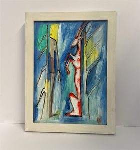 ROBERTO BARNI "Paesaggio con figura". 2006, tecnica mista su cartone e tempera a olio. "Landscape [..]