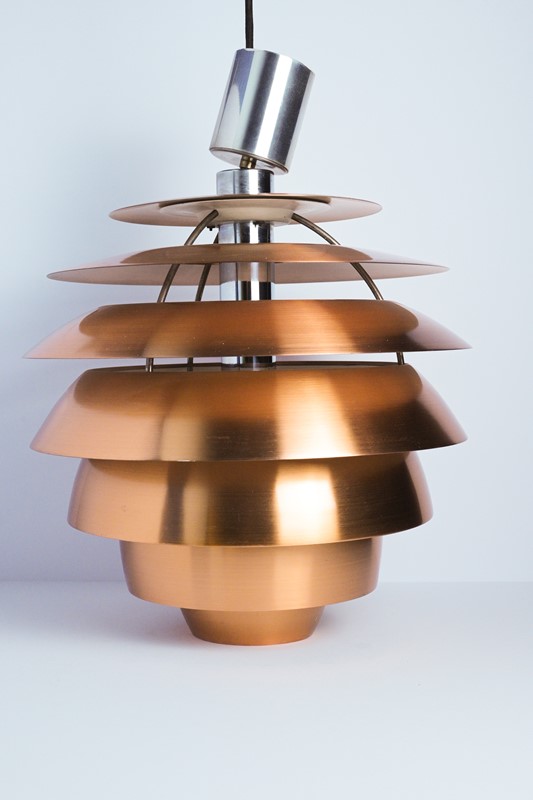 Brushed copper and chromed metal chandelier, model 1231 from Stilnovo, 1960s.