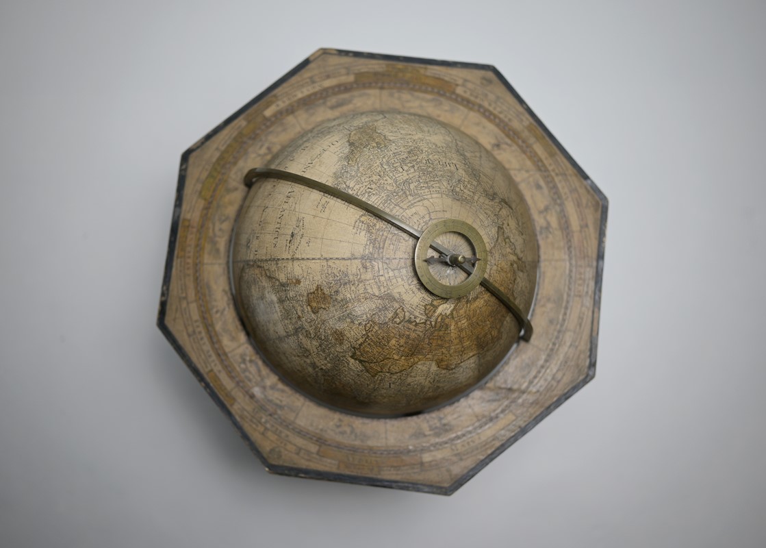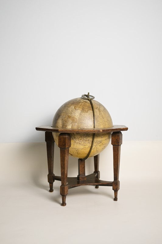 Mappamondo da un originale di I.G. Klinger del 1792 su base in legno su piedi rastremati.