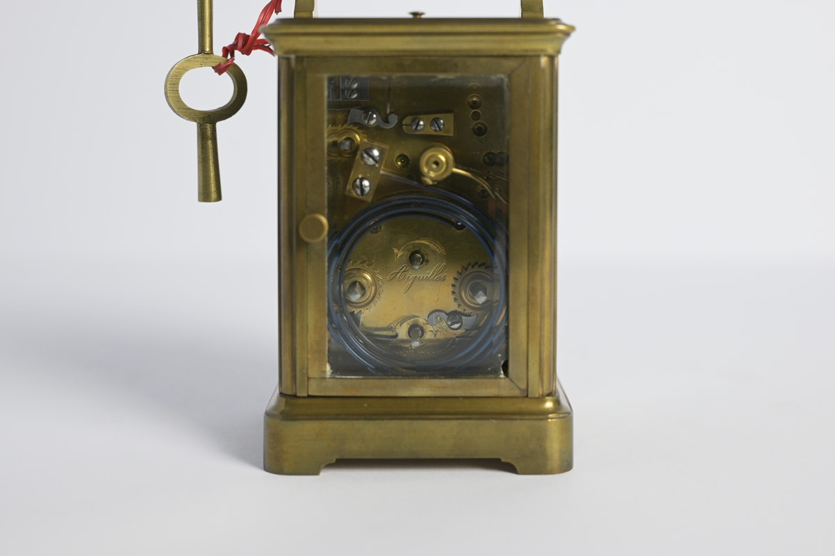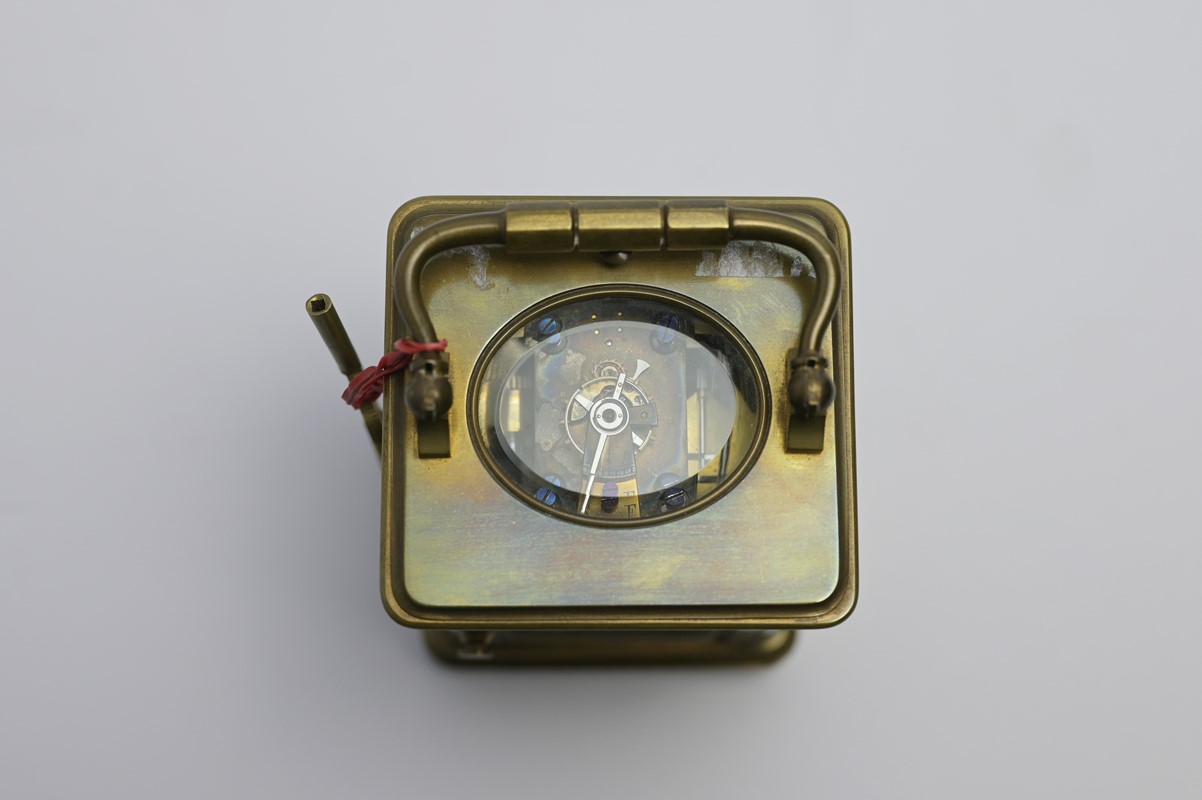 Officier clock in brass and crystal, with hinged handle, signed Chaudé, Paris, complete with key, late 19th century / early 20th century XX, h 11 cm.