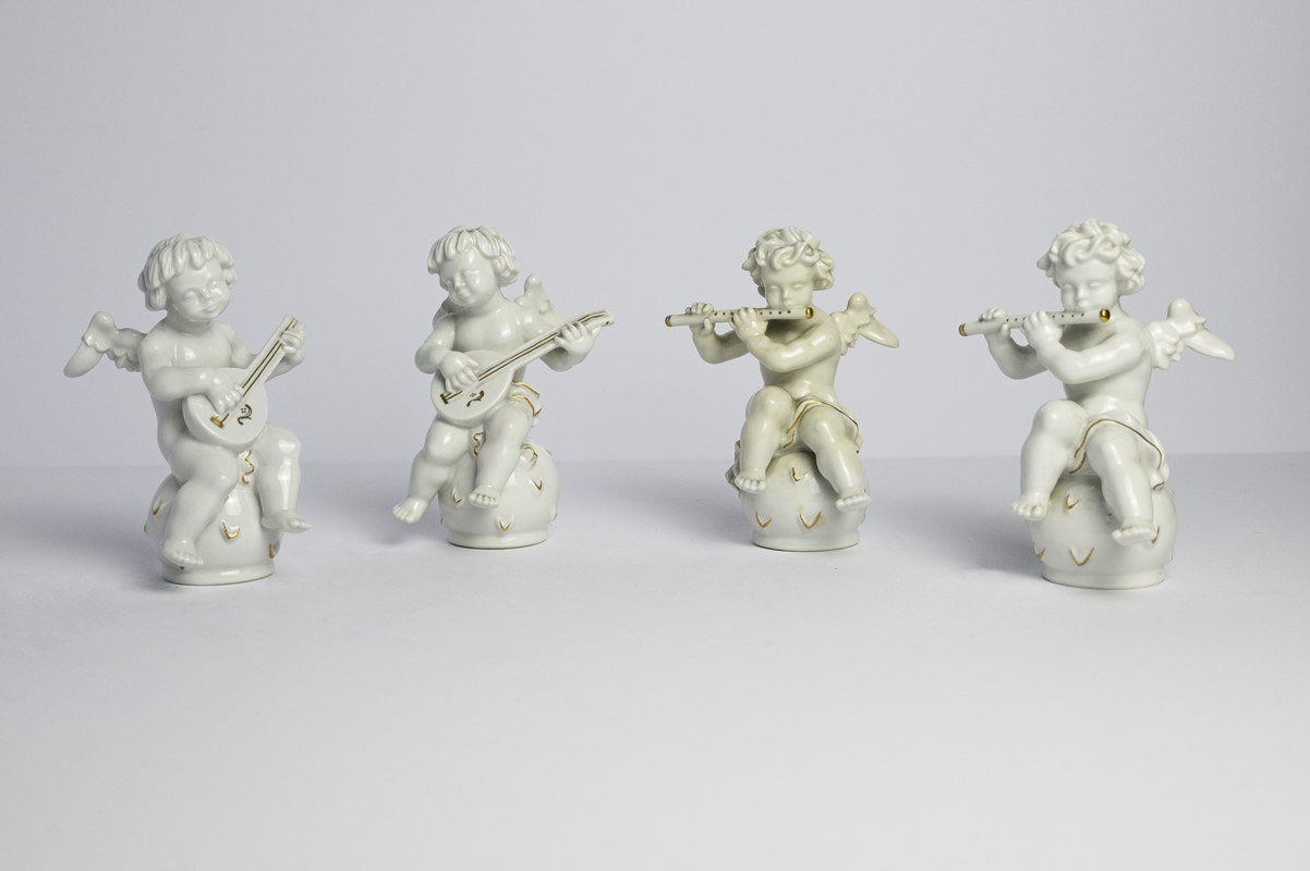 Gruppo di 4 suonatori in porcellana Rosenthal, h cm 13,5.