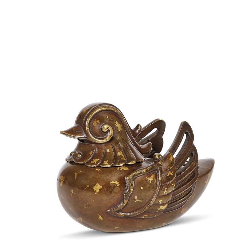 in bronzo gilt splashed raffigurante anatra mandarina.
