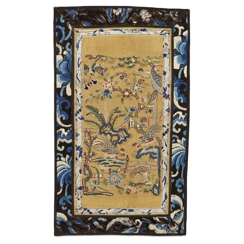 清 十九世纪 刺绣锦鸡百花图 凤求凰图