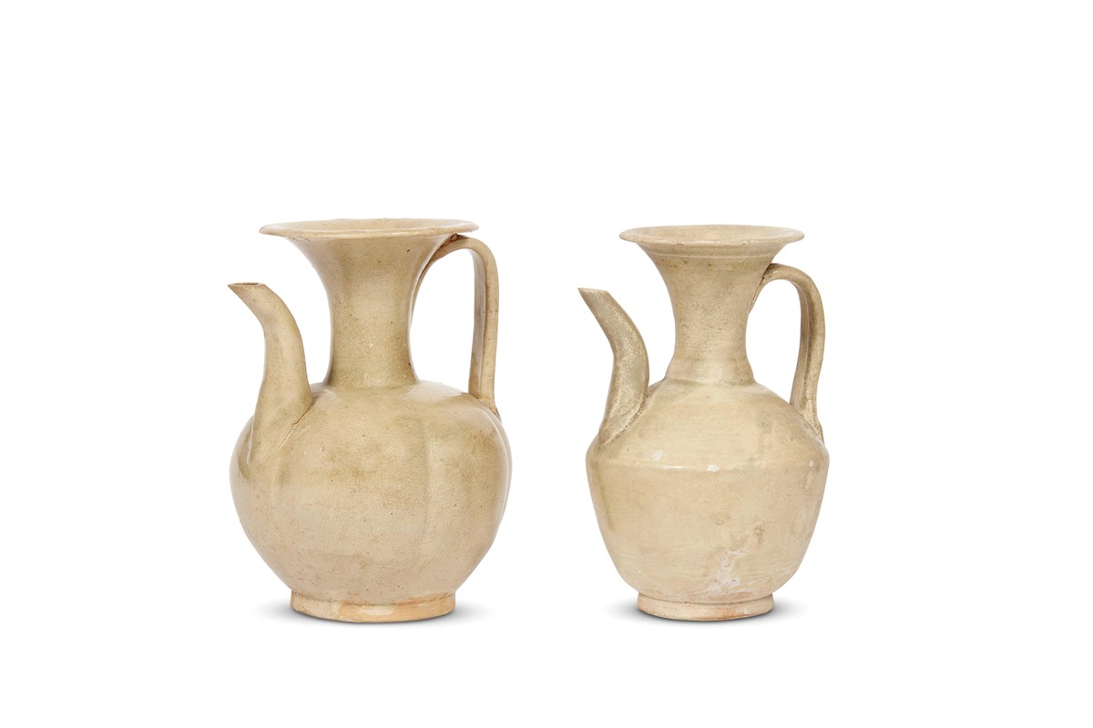 宋 十世纪 越窑白瓷执壶两件