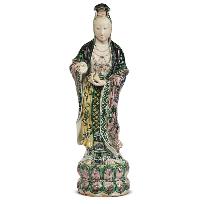 in bisquit Shancai raffigurante Guanyin sulla base di loto.