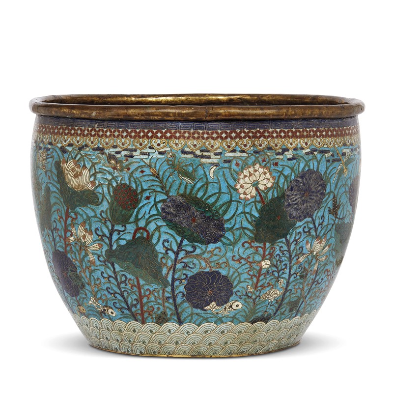清 十九世纪 景泰蓝松石绿地莲纹缸