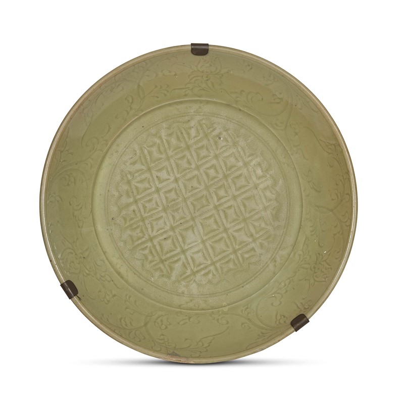 明 十五世纪 龙泉窑青釉刻花格纹大盘
