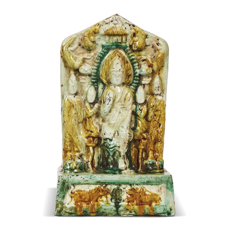 raffigurante una stele buddista nei colori Sancai, reca scritta incisa.