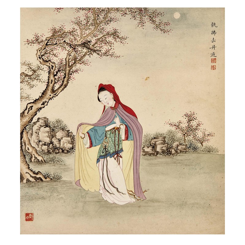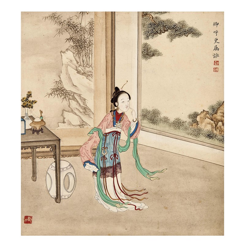 清 仕女图 设色纸本 一组三件 夕醉 印