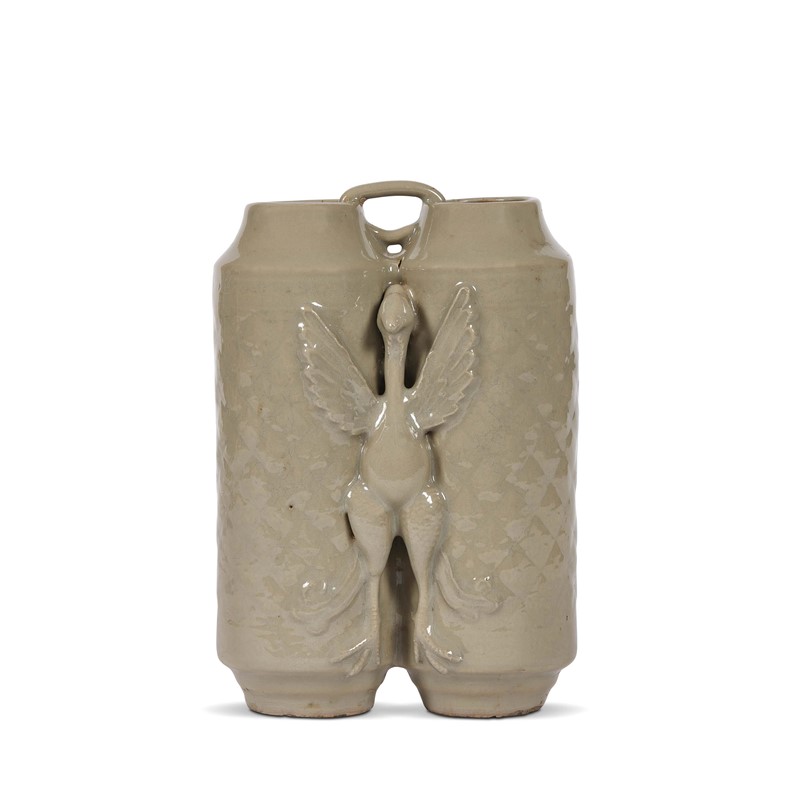di forma “Champion” in porcellana celadon con drago e fenice a rilievo.