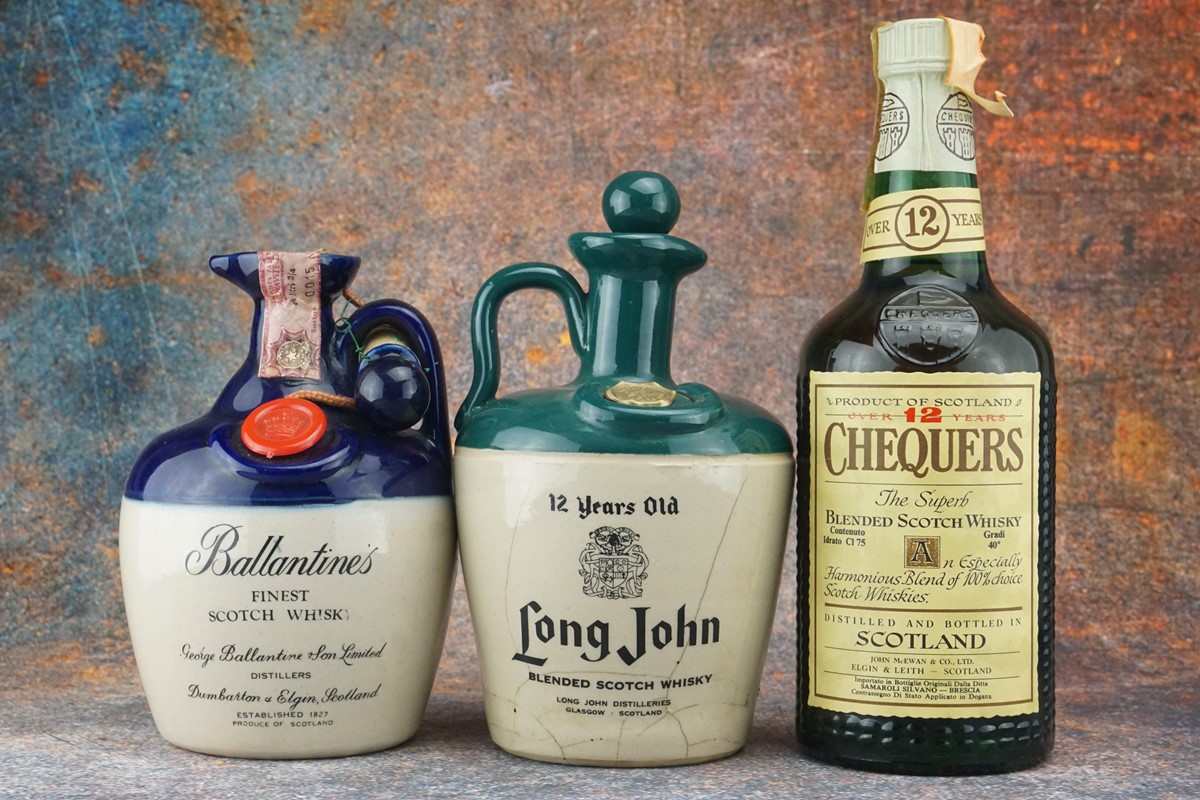 Selezione Scotch Whisky Scotland Ballantine’s - 1 bt 75 cl 40% vol. Long John Blended 12 Years Old - 1 bt 75 cl 43% vol. Chequers The Superb 12 Years Old - 1 bt 75 cl 40% vol. 3 bt E Ballantine’s - Ceramic Decanter, 1.394 gr, Imported by Spirit S.p.a Long John Blended 12 Years Old - Ceramic Decanter, 1526 gr, Imported by Stock S.p.a Chequers The Superb 12 Years Old- Imported by Samaroli
