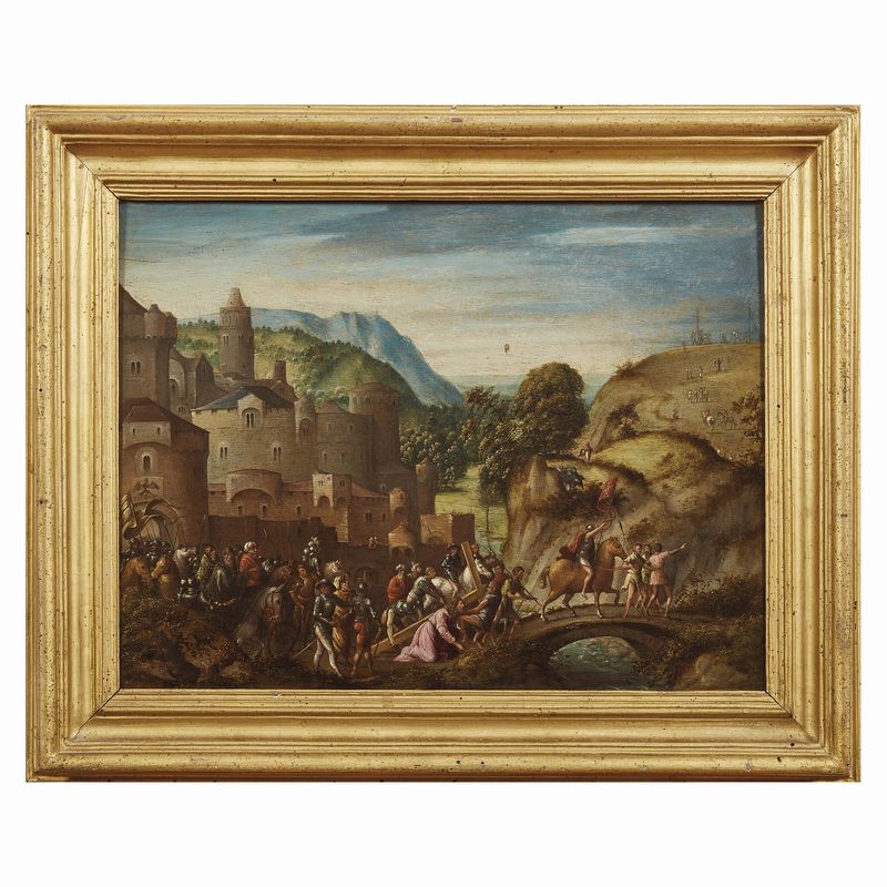 Verosimilmente eseguito come elemento di predella per una pala non identificata, il nostro dipinto tradisce l’influenza della grafica nordica nella definizione degli edifici e del paesaggio, comune in Veneto all’inizio del Cinquecento. Motivi estranei alla tradizione classica rimarranno in ogni caso costanti nella produzione dell’artista, per effetto dei contatti con Dosso Dossi, Girolamo Romanino e Antonio da Pordenone, che lo condurranno a esiti imprevisti nella sua prima formazione vicentina. Si veda in proposito, anche per il confronto con un dipinto a piccole figure databile però nell’ambito del quarto decennio, la Conversione di Saulo analizzata da Marco Tanzi (Il vertice anticlassico di Marcello Fogolino, in “Prospettiva” 167-168, 2017, pp. 74-101).
