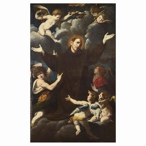 Elisabetta Sirani (Bologna 1638-1665) SANT'ANTONIO ADORA IL BAMBINO GESÙ olio su tela, cm 142,5x96,5 [..]