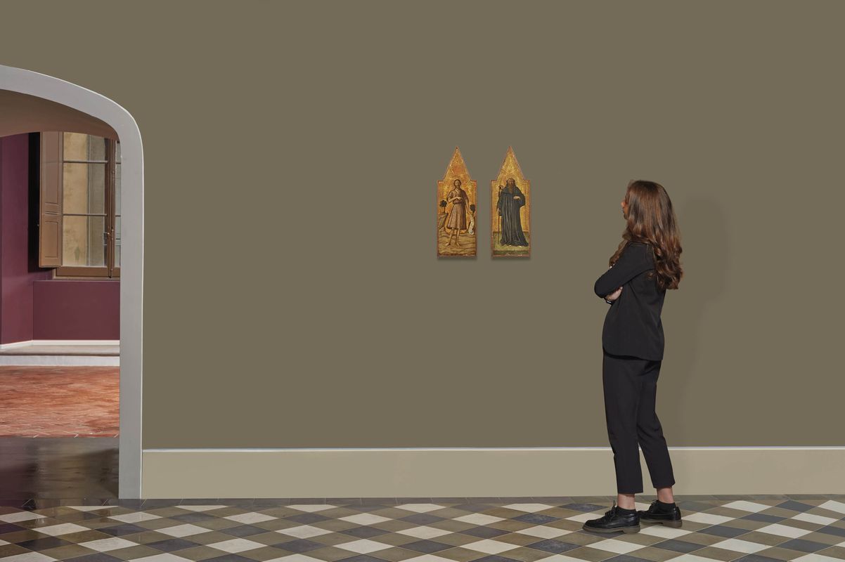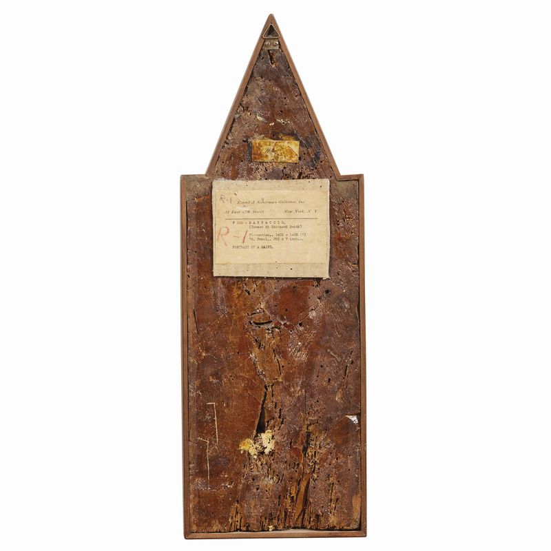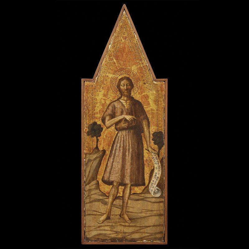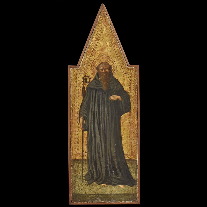 Tra le rare opere attribuibili al Maestro, documentato a Firenze nel 1435 nei pressi di S. Domenico di Fiesole e attivo a stretto contatto con Zanobi Strozzi, l’insieme tuttora da ricostruire da cui provengono i nostri pannelli e, come già suggerito dal Volpe, la tavoletta con San Lorenzo nella Walters Art Gallery di Baltimora, dalla collezione Massarenti, uguale per sagoma, dimensioni e punzonatura alle tavole qui presentate.