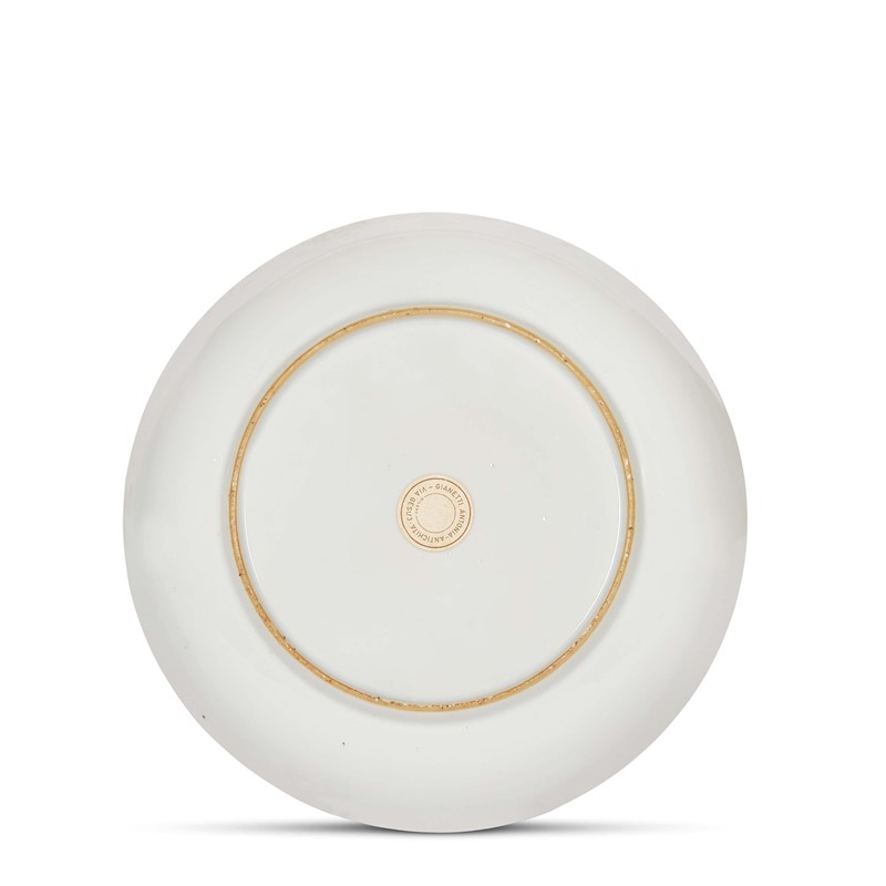 in porcellana monocroma. Sul retro etichetta ANTONIA GIANETTI ANTICHITÀ - VIA GESÙ 3 MILANO; diam. cm 20,5
