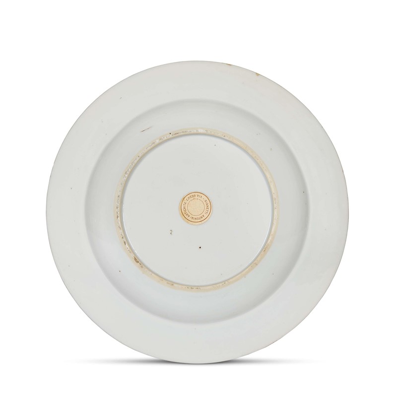 in porcellana policroma e oro. Sul retro etichetta ANTONIA GIANETTI ANTICHITÀ - VIA GESÙ 3 MILANO; diam. cm 22,8