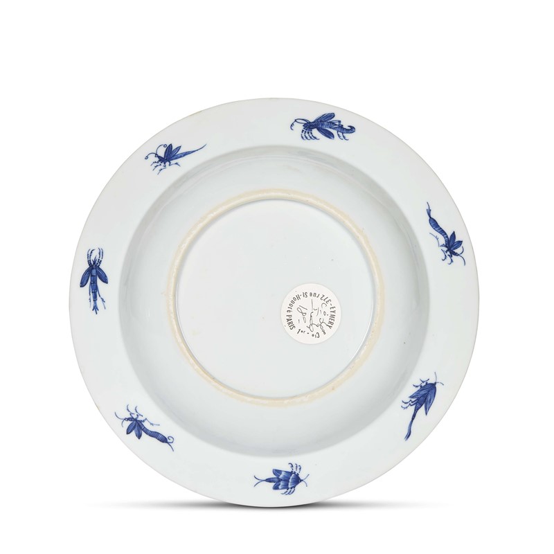La versione in bianco e blu è più rara rispetto a quelle in palette cosiddetta Imari, qui presentata al lotto successivo in catalogo. Tuttavia si riscontrano varie versioni coloristiche e varie interpretazioni stilistiche del soggetto da parte dei pittori cinesi prima e giapponesi più tardi. Talvolta alcune versioni in bianco e blu non presentano le riserve sulla tesa, come del resto i pezzi di minori dimensioni, come ad esempio le tazzine da caffè.