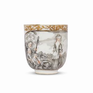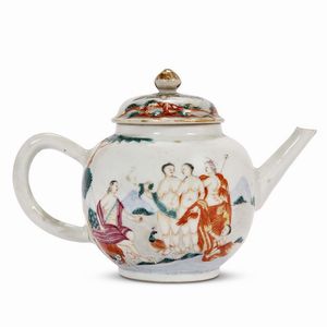 TEIERA, CINA, DINASTIA QING, PERIODO QIANLONG, 1745 CIRCA in porcellana policroma e oro. Sul fondo etichetta GIANETTI [..]