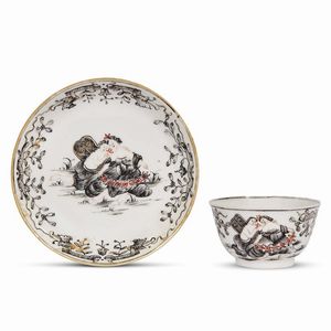 TAZZINA CON PIATTINO, CINA, DINASTIA QING, PERIODO QIANLONG, 1745-1750 CIRCA in porcellana policroma e oro; tazzina [..]