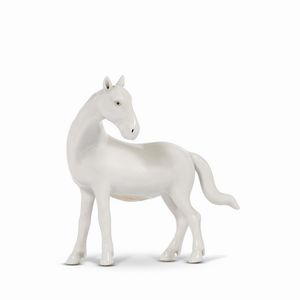 CAVALLO, CINA, DINASTIA QING, PERIODO QIANLONG, 1800 CIRCA in porcellana bianca; cm 17x17x6 A HORSE, CHINA, [..]