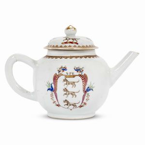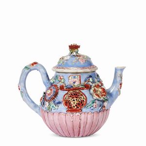 TEIERA, CINA, DINASTIA QING, PERIODO YONGZHENG, 1678-1735 in porcellana policroma; cm 13,2x15x10,5 A TEAPOT, [..]
