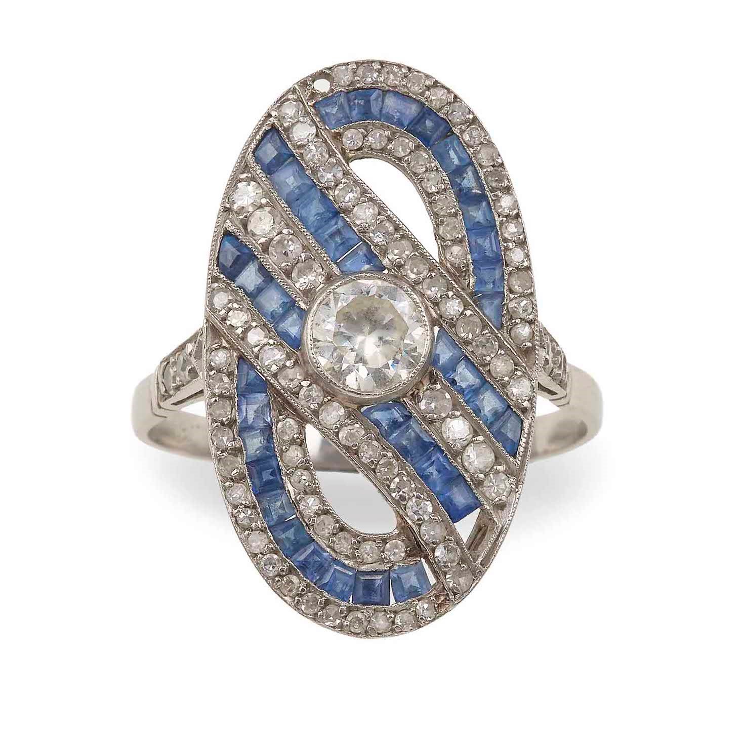 Anello con diamanti e piccoli zaffiri