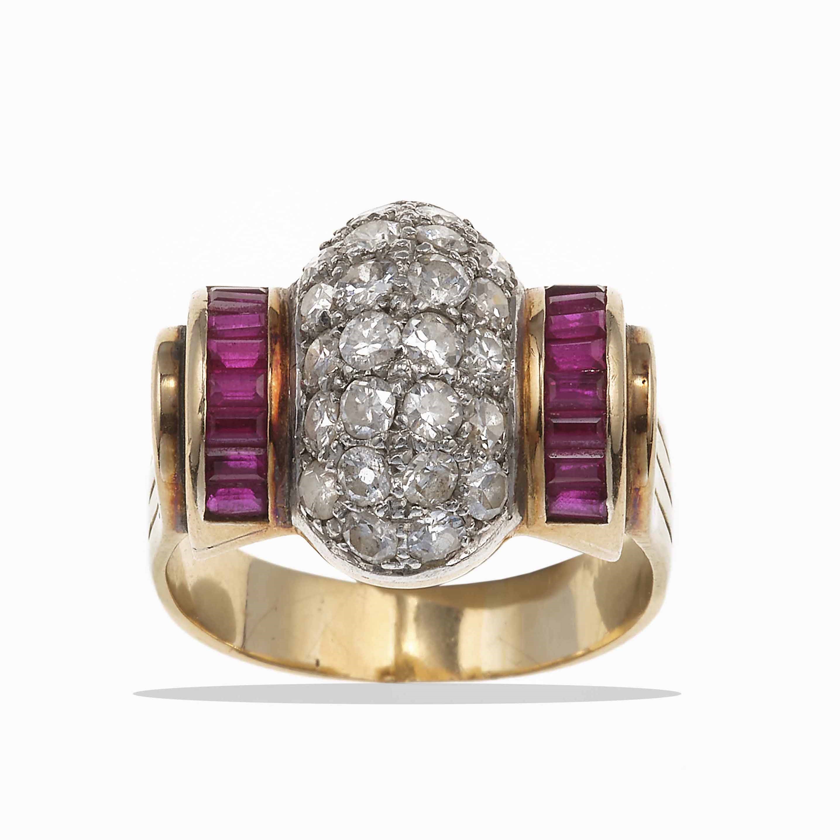 Anello con diamanti e rubini sintetici