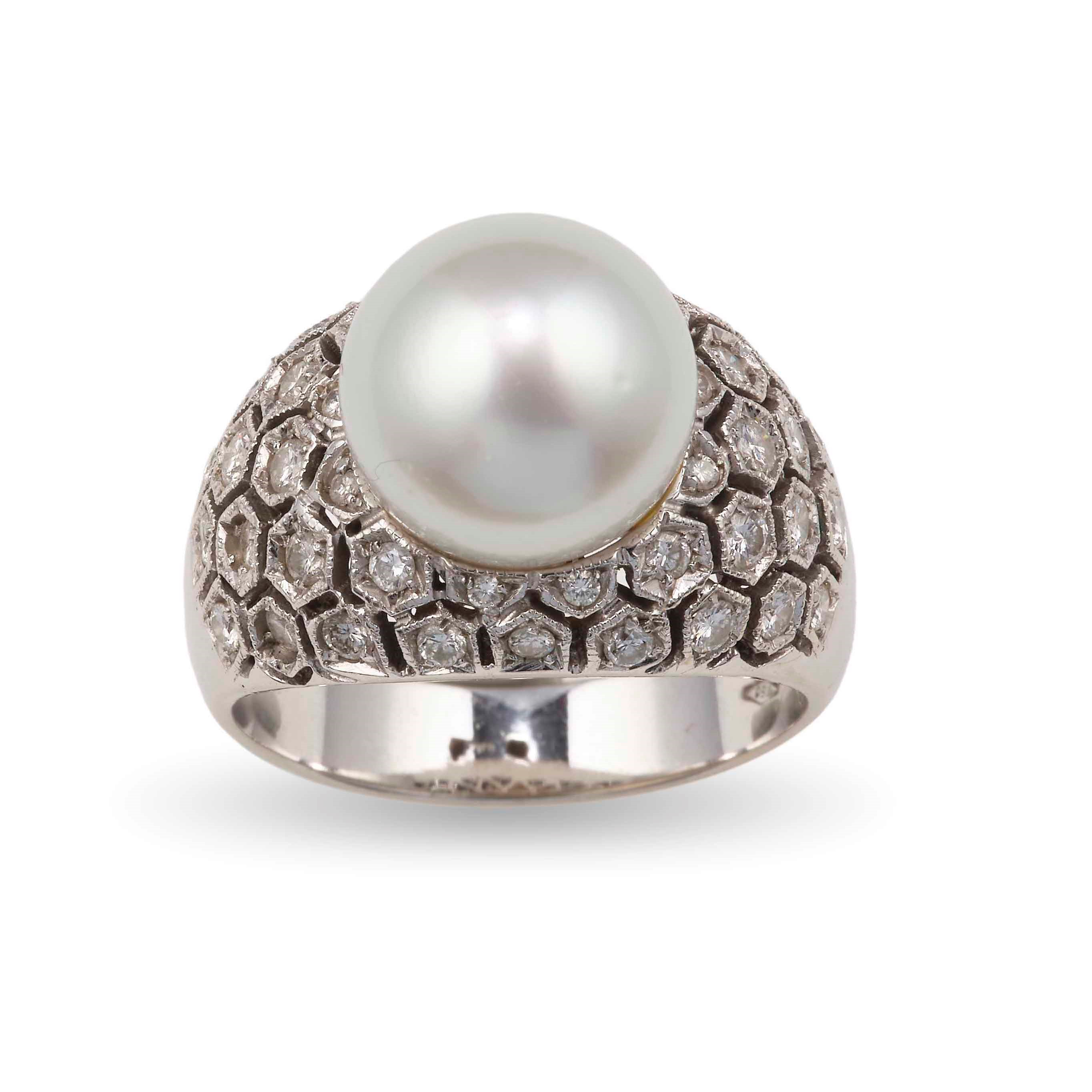 Anello con perla coltivata e piccoli diamanti