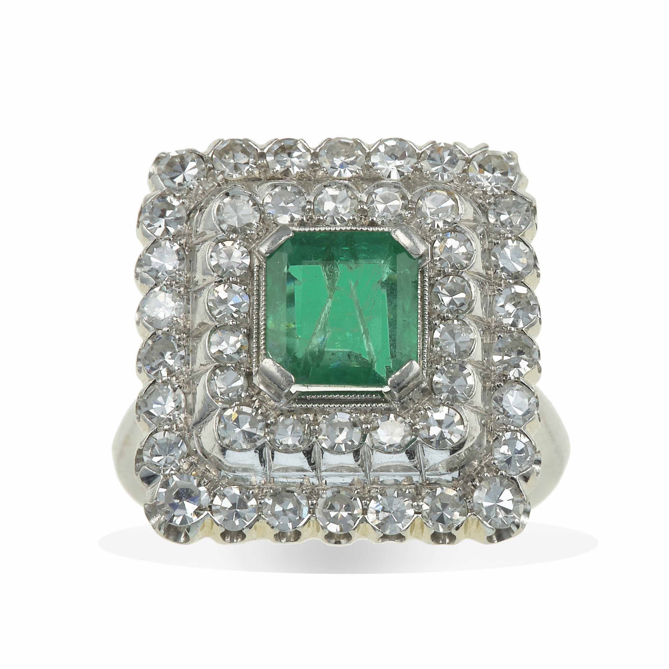 Anello con smeraldo di ct 1.10 circa e diamanti taglio huit-huit a contorno