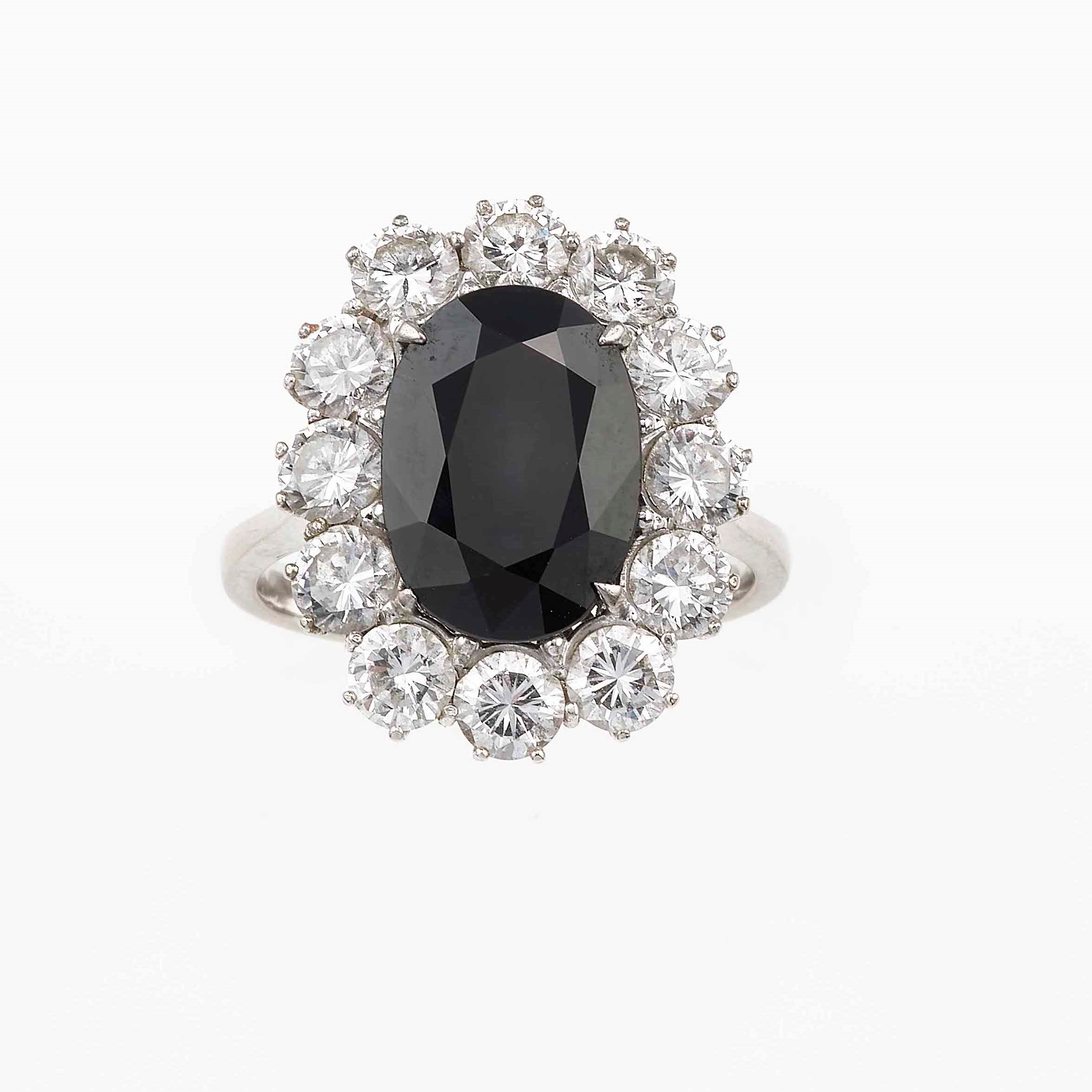 Anello con zaffiro Australia di ct 4.80 circa e diamanti taglio a brillante a contorno [..]