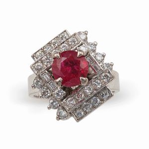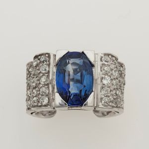 Anello con zaffiro di ct 4.70 circa e diamanti